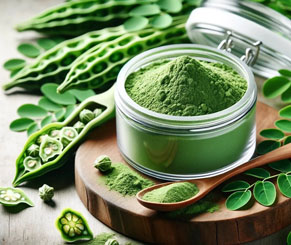 Le moringa, connu comme l’arbre de vie, est une source exceptionnelle de protéines végétales et d’antioxydants. Il est utilisé dans des jus et des poudres.